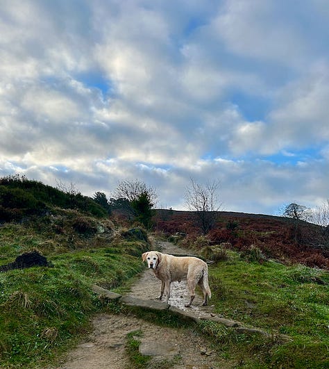 It’s a bit like Bella, our 13 1/2 year old yellow labrador facing down the end of a dog walk. She’ll have been happy as anything sniffing, running, and ambling along the moorland paths but turning into our road at the end of the walk and her pace slows. And slows. Then she stops.